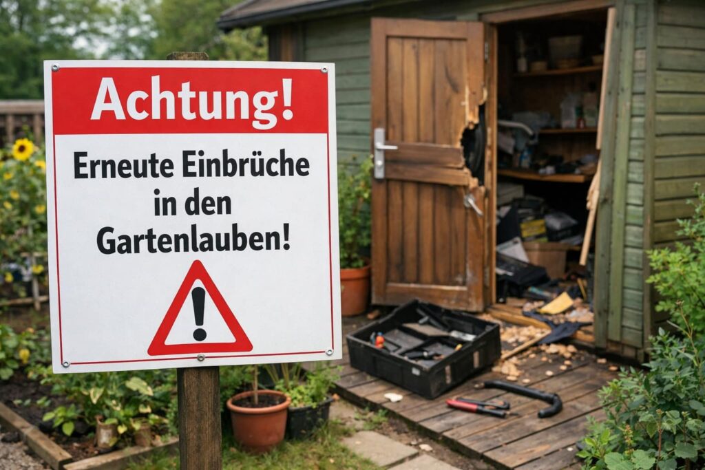 Achtung liebe Kleingärtner*innen. Schon wieder sind Einbrecher unterwegs (21.2.26). Einige Gärten in der Anlage Rothstücker sind betroffen (Fritz und Sofie Müller Weg). Bitte kontrolliert alles und falls ihr versichert seid bitte alles dokumentiert an die Polizei und auch uns Bescheid geben! Generell bei Einbruch bitte die Polizei informieren und den Vorstand.